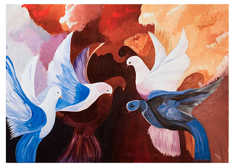 The lively birds depict the flight towards freedom.